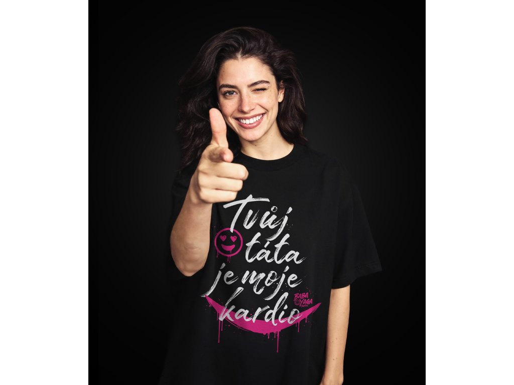 Černé tričko s nápisem „Tvoje máma je moje kardio“ a "Tvůj táta je moje kardio". Pohodlný střih, výrazný humor a poctivá gramáž 220 g/m².