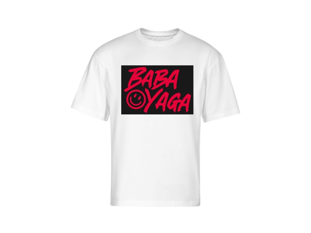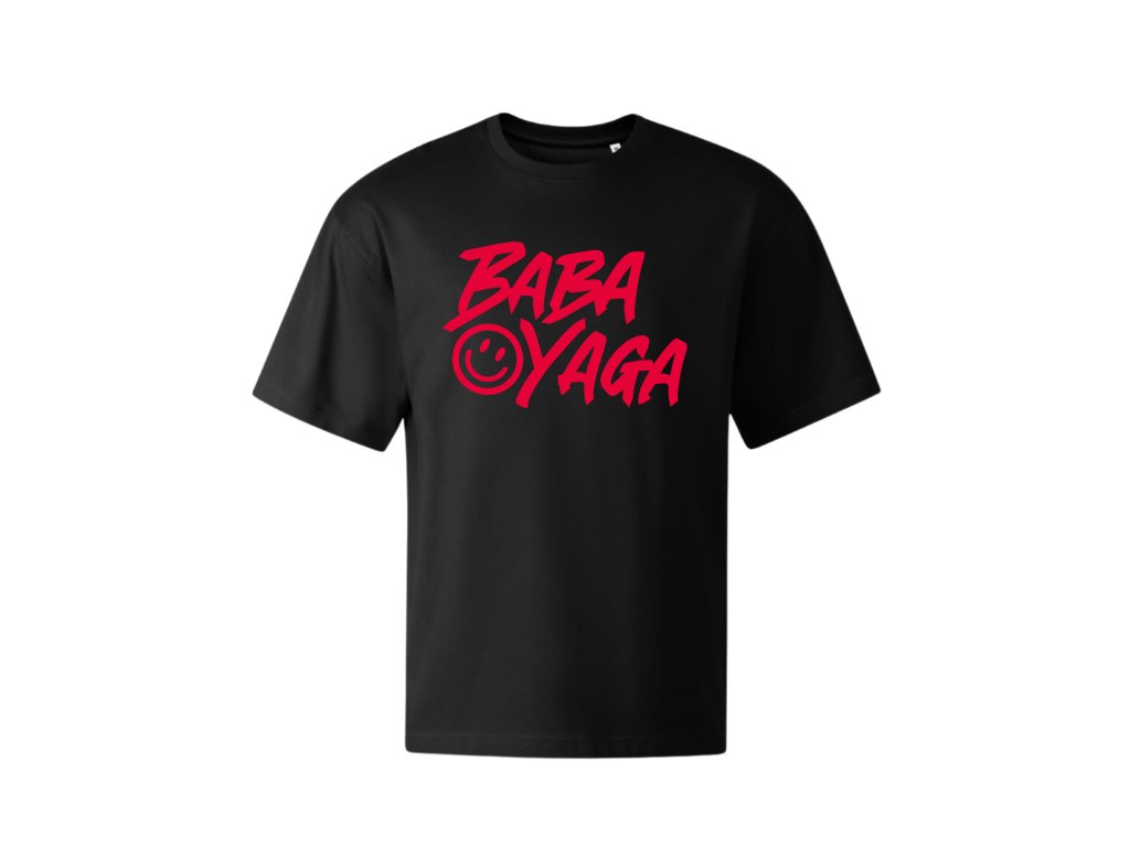 BABA YAGA oversize tričko – 100 % kvalitní bavlna (220 g/m²) pro prodyšné a pohodlné nošení. Robustní materiál, který si zachovává tvar a vydrží i pravidelné praní. Dostupné v černé i bílé barvě.